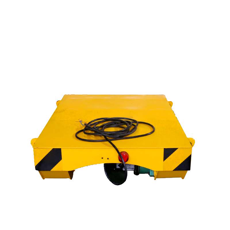 托電纜供電軌道平車,是將交流380v電纜線直接引入平車電氣控制系統,來控制平車的啟動,停止、前進、后退等。通過平車的移動來拖動放置在地面上的電纜實現平車供電,電纜線放置在兩軌中心,操作系統為低壓36v電源控制;平車上可以加裝液壓升降系統;該系列平車適用于惡劣環境,高溫環境,防爆環境等場合;由于機構比較簡單,成本較低,是車間短距離過跨較常見的軌道平車;相對于蓄電池供電軌道平車,不受使用時間的限制,相對于低壓軌道供電平車,對于軌道鋪設要求不高,相對于電纜卷筒供電平車,成本更低;該平車適用于運行距離不長(<20m)、使用頻率較高、整車高度較低的 場合;對于運行距離較短、運行速度較慢的場合可以使用拖鏈減少電纜的磨損。