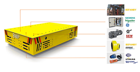BWP:蓄電池?zé)o軌車是一種以蓄電池作為電源,電機(jī)減速機(jī)作為驅(qū)動系統(tǒng),實心包膠車輪直接在地面行走的轉(zhuǎn)運(yùn)車,其運(yùn)行不受限制,進(jìn)口的車輪保證地面不受損壞,360°原地轉(zhuǎn)彎適應(yīng)更狹小的空間運(yùn)行,360度無死角防護(hù)、遇人自動停止等功能,保證了運(yùn)行過程中的安全問題。觸摸屏、搖桿操作等設(shè)計使操作更加人性化。全自動化無人操作的功能讓它更加智能,嫣然成為工業(yè)4.0時代的先驅(qū)者。適應(yīng)爬坡、防爆、粉塵等各種場合,150T大載重量的誕生,使其躍居車間搬運(yùn)設(shè)備的第一位,成為了“尊貴”的代名詞。
